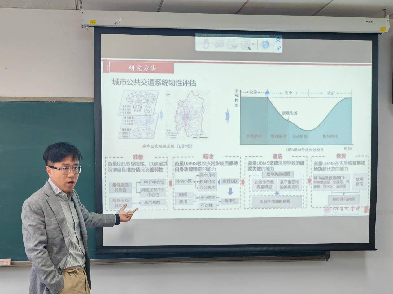 2025年4月10日,重慶大學管理科學與房地產(chǎn)學院副院長洪競科教授在中央財經(jīng)大學2025年專題學術(shù)講座暨建設(shè)經(jīng)濟與管理系列講座第146期上,應(yīng)邀為管理科學與工程學院師生開展題為《極端天氣下城市基礎(chǔ)設(shè)施的氣候韌性與社會公平》的報告。本次講座由建設(shè)經(jīng)濟管理系主任楊帆副教授和朱辰老師主持,工程與項目管理專業(yè)24級碩士生參加了講座。