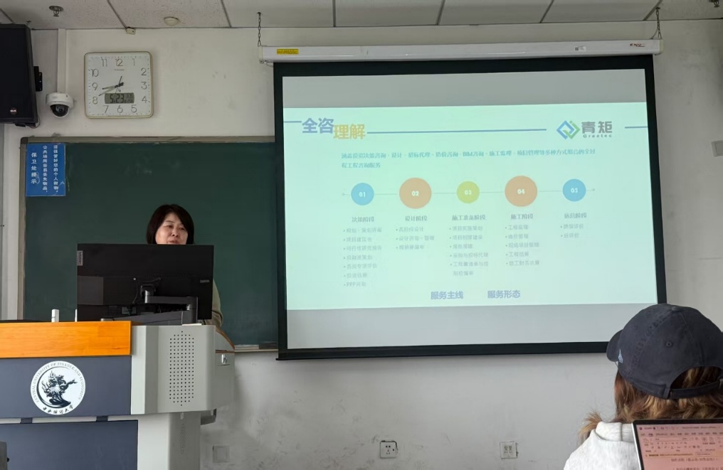 2025年5月23日上午8點(diǎn),青矩工程顧問(wèn)有限公司副總經(jīng)理盧玲玲應(yīng)邀在中央財(cái)經(jīng)大學(xué)2025年專題學(xué)術(shù)講座,暨建設(shè)經(jīng)濟(jì)與管理系列講座第151期,開(kāi)展題為《全過(guò)程工程咨詢政策基礎(chǔ)及業(yè)務(wù)發(fā)展實(shí)踐》的專題講座。講座由管理科學(xué)與工程學(xué)院建設(shè)經(jīng)濟(jì)與管理系朱辰老師主持,工程管理專業(yè)學(xué)生積極參與。