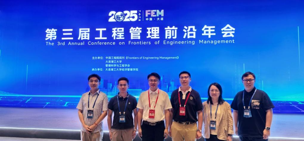 2025年7月4日-7月6日,“第三屆工程管理前沿學(xué)術(shù)年會(huì)”(FEM2025)在大連召開。我院副院長(zhǎng)李玉龍教授帶隊(duì),建設(shè)經(jīng)濟(jì)與管理系王昊教授、管理科學(xué)系陳俊霖教授、建設(shè)經(jīng)濟(jì)與管理系青年教師茅權(quán)博士和吳國濱博士、管理科學(xué)系青年教師吳迪博士參加了本次學(xué)術(shù)年會(huì)。