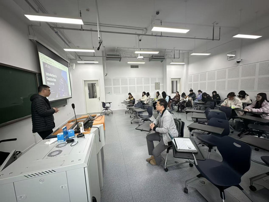 左教授以混凝土、鋼材、木材等主要建筑材料為切入點(diǎn),剖析其成分特性、結(jié)構(gòu)性能及應(yīng)用場景,講解了在結(jié)構(gòu)設(shè)計與施工中的關(guān)鍵考慮因素。他重點(diǎn)介紹了生命周期評估(LCA)在建筑材料環(huán)境影響與碳排放分析中的應(yīng)用,通過具體案例展示了數(shù)據(jù)采集、模型構(gòu)建和結(jié)果解讀的全過程,幫助同學(xué)們建立從全生命周期審視材料環(huán)境影響的系統(tǒng)思維。