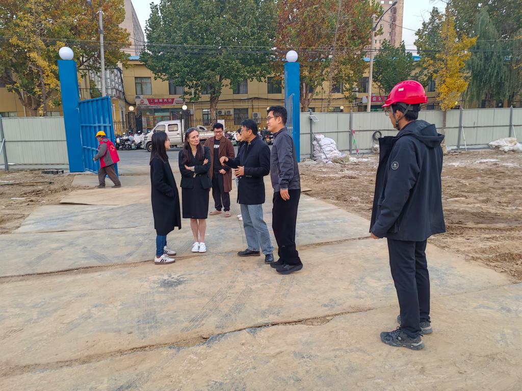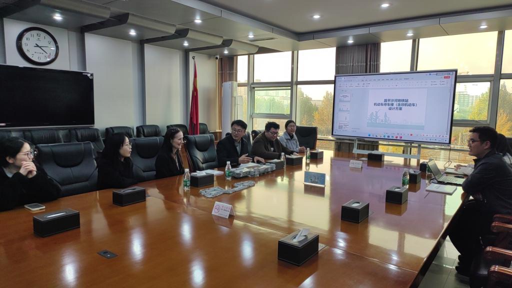 接著,與會師生陪同Varga教授調(diào)研了沙河地鐵站非機動車立體停車樓項目。此次調(diào)研受到了沙河鎮(zhèn)政府的熱情接待。沙河鎮(zhèn)城市管理辦公室負責人趙寶山詳細介紹了該停車樓項目的需求識別、設計理念和設計方案,雙方圍繞新技術應用、地鐵站早晚高峰的韌性、應急安全管理、能源管理進行了充分的交流研討。隨后,趙寶山帶領Varga教授和與會師生參觀了項目現(xiàn)場。