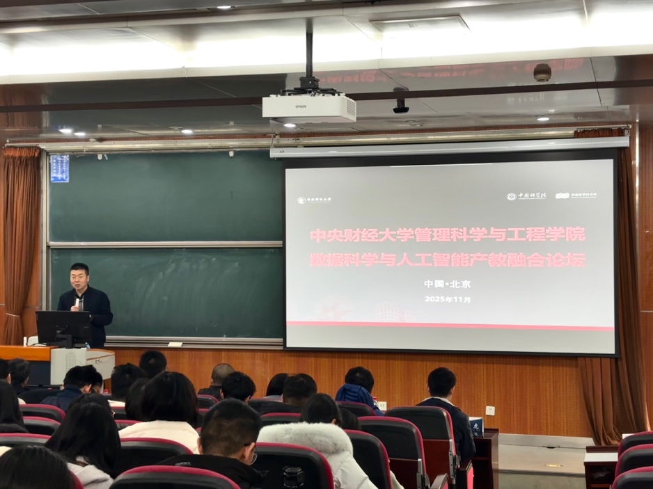 2025年11月22日,中央財經(jīng)大學管理科學與工程學院成功舉辦以“智匯產(chǎn)教,數(shù)創(chuàng)未來”為主題的數(shù)據(jù)科學與人工智能產(chǎn)教融合論壇。學院院長劉志東、黨委書記王志鋒、副院長荊中博、“許國志大數(shù)據(jù)英才班”項目主任李愛華、教育教學創(chuàng)新專項主任兼“許國志大數(shù)據(jù)英才班”副主任李國文、管理科學系副主任遲鈺雪、投資系主任謝娜、青年教師吳迪博士、田虎博士等專業(yè)教師,以及“許國志大數(shù)據(jù)英才班”和“投資學+大數(shù)據(jù)雙學士學位班”的100余名同學,與多位業(yè)界嘉賓共同參與,圍繞智能時代背景下數(shù)據(jù)科學與人工智能人才培養(yǎng)的新路徑與新模式展開深入探討。學院副院長荊中博主持特邀產(chǎn)業(yè)專家報告,學院黨委書記王志鋒主持產(chǎn)教融合研討會。