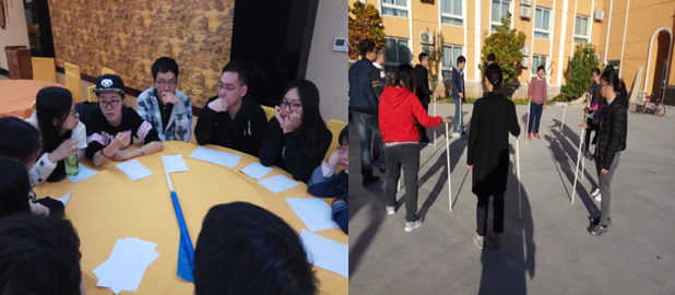 “摸牌游戲”環(huán)節(jié),哪個組能在最短時間內(nèi)將背面朝上的牌按順序翻轉(zhuǎn)過來即為獲勝,三輪比拼下來,大家發(fā)現(xiàn)獲勝隊伍的共同點就是團隊成員溝通準確、積極協(xié)作以及堅持到底。“極速六十秒”游戲規(guī)定由一名同學一分鐘內(nèi)根據(jù)圖片提示將30張圖片按照數(shù)字從小到大排序,獲勝的“NZND”隊用時最短,隊長李麒麟激動地說“一開始看似不可完成的任務,沒想到通過我們隊員的共同努力竟然成功了!”在“邏輯排序”環(huán)節(jié)中,每組同學們都熱情高漲、全心投入,雖然都沒有完美完成任務,但是大家在過程中了鍛煉了能力,提升了自我。最激動人心的是接下來的體能訓練,每組同學們分別進行了綁腿跑、不倒森林、跳大繩三個環(huán)節(jié),整齊的口號聲回蕩在基地上空,最后組與組之間也忘記了競爭,率先完成的兩組一起為最后一組同學吶喊助威,成功的那一刻所有人都沸騰了,情不自禁的跳了起來……