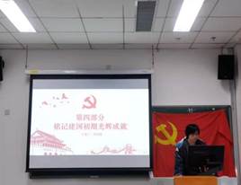 會議第三部分,為深入開展系列黨史學(xué)習(xí)教育,研究生第三黨支部在11月進(jìn)行了黨史、新中國史、改革開放史、社會主義發(fā)展史的專題學(xué)習(xí)活動,并于本次會議當(dāng)天進(jìn)行學(xué)習(xí)成果分享。各小組成員分別從不同角度對中國共產(chǎn)黨成立100周年以來的重大歷史事件進(jìn)行回顧,并結(jié)合實(shí)際分析其現(xiàn)實(shí)意義,以史為鑒,切實(shí)增強(qiáng)在實(shí)踐中守初心、擔(dān)使命的思想自覺和行動自覺。