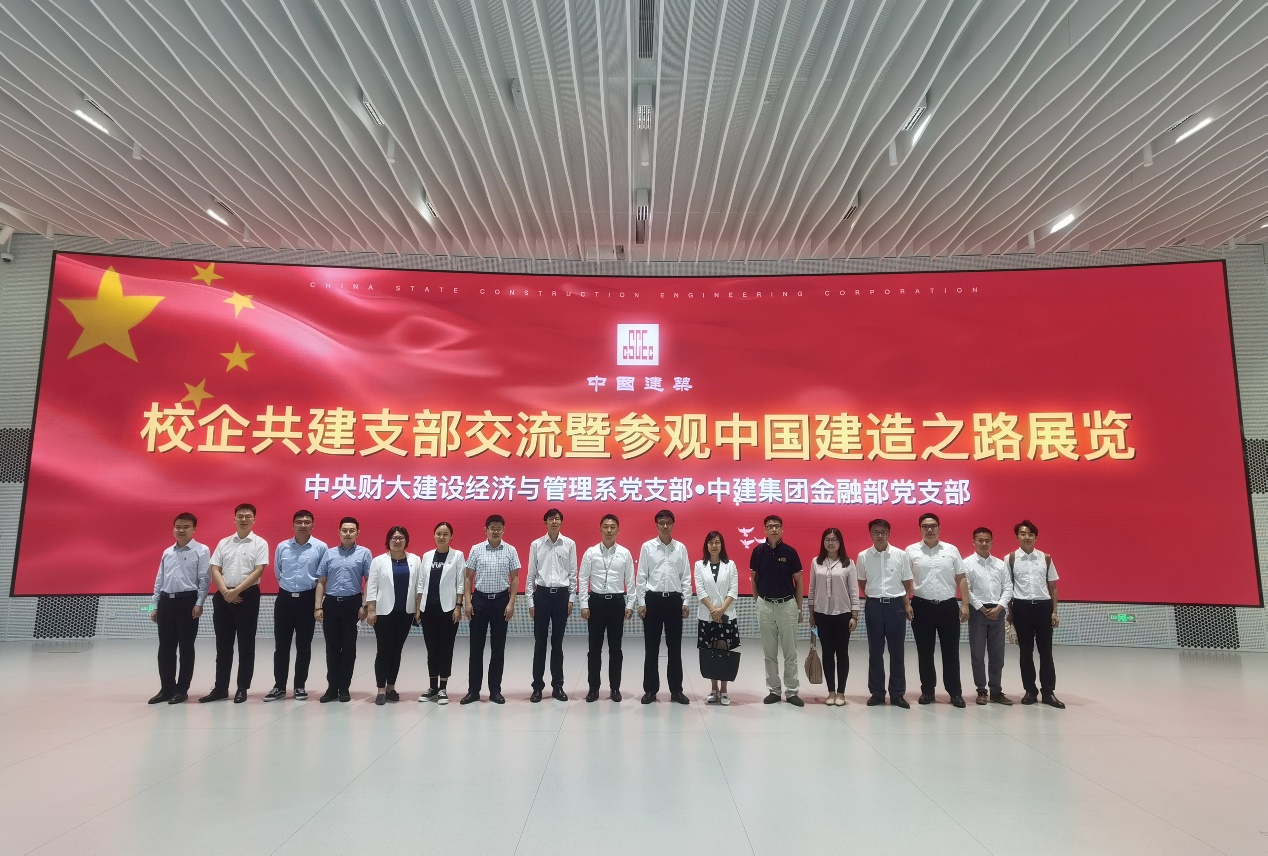 習(xí)近平總書記指出,中國制造、中國創(chuàng)造、中國建造共同發(fā)力,繼續(xù)改變著中國的面貌。為了深入學(xué)習(xí)和體會(huì)中國建造的魅力,以實(shí)際行動(dòng)喜迎二十大,9月上旬,建設(shè)經(jīng)濟(jì)與管理系教工黨支部聯(lián)合中建集團(tuán)金融部黨支部,開展校企支部共建活動(dòng),并參觀中建匠心打造的“中國建造之路——中國建筑改革發(fā)展和黨的建設(shè)成就展”。管理科學(xué)與工程學(xué)院黨委書記姜濤、中央財(cái)經(jīng)大學(xué)教務(wù)處處長李桂君、國際合作處副處長王昊、建設(shè)經(jīng)濟(jì)與管理系教工黨支部李玉龍、高然、楊帆、吳國濱和茅權(quán)參加了本次活動(dòng)。