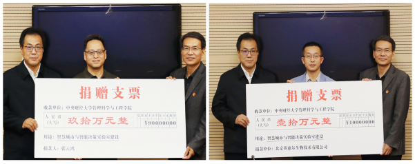 11月1日下午,管理科學(xué)與工程學(xué)院2001級(jí)研究生張?jiān)气櫋⑷螡闪中S严蛑醒胴?cái)經(jīng)大學(xué)智慧城市與智能決策實(shí)驗(yàn)室建設(shè)捐贈(zèng)儀式在學(xué)院南路校區(qū)學(xué)術(shù)會(huì)堂603會(huì)議室舉行。中審亞太會(huì)計(jì)師事務(wù)所(特殊普通合伙)山東分所所長(zhǎng)張?jiān)气櫍螡闪中S汛怼⒈本┯⒒轄柹锛夹g(shù)有限公司人力資源與行政中心總監(jiān)李守勇,上海領(lǐng)航斗索新能源科技有限公司副總經(jīng)理2001級(jí)研究生校友呂航,我校副校長(zhǎng)李建軍,校友與基金工作辦公室主任程麗芳,管理科學(xué)與工程學(xué)院院長(zhǎng)劉志東、黨委書(shū)記王志鋒、副院長(zhǎng)李玉龍、教師欒華參加捐贈(zèng)儀式。捐贈(zèng)儀式由管理科學(xué)與工程學(xué)院黨委組織員、校友工作負(fù)責(zé)人姜濤主持。
