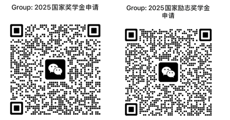 請準(zhǔn)備申請國家獎學(xué)金、國家勵志獎學(xué)金的同學(xué)分別進(jìn)入對應(yīng)微信群聊,后續(xù)其他相關(guān)通知將在微信群內(nèi)發(fā)布,未及時進(jìn)群導(dǎo)致錯過通知則后果自負(fù)。