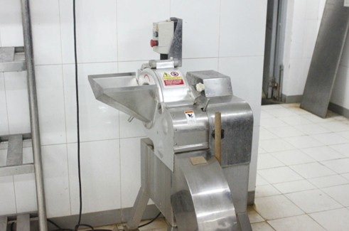 隨后同學們來到了處理菜品的場所。在科技快速發(fā)展的今天,食堂也逐漸由“人力模式”逐漸向“機械模式”過渡。在這里機械代替了人力,大部分的蔬果的切削工作都采由機器來代勞。“無論是切塊、切丁還是切絲、切片我們的機器都能滿足。”陳老師自豪地介紹道,“采用‘機械化’不僅提高了效率、節(jié)省了人力,更重要的是更衛(wèi)生、更安全!。”