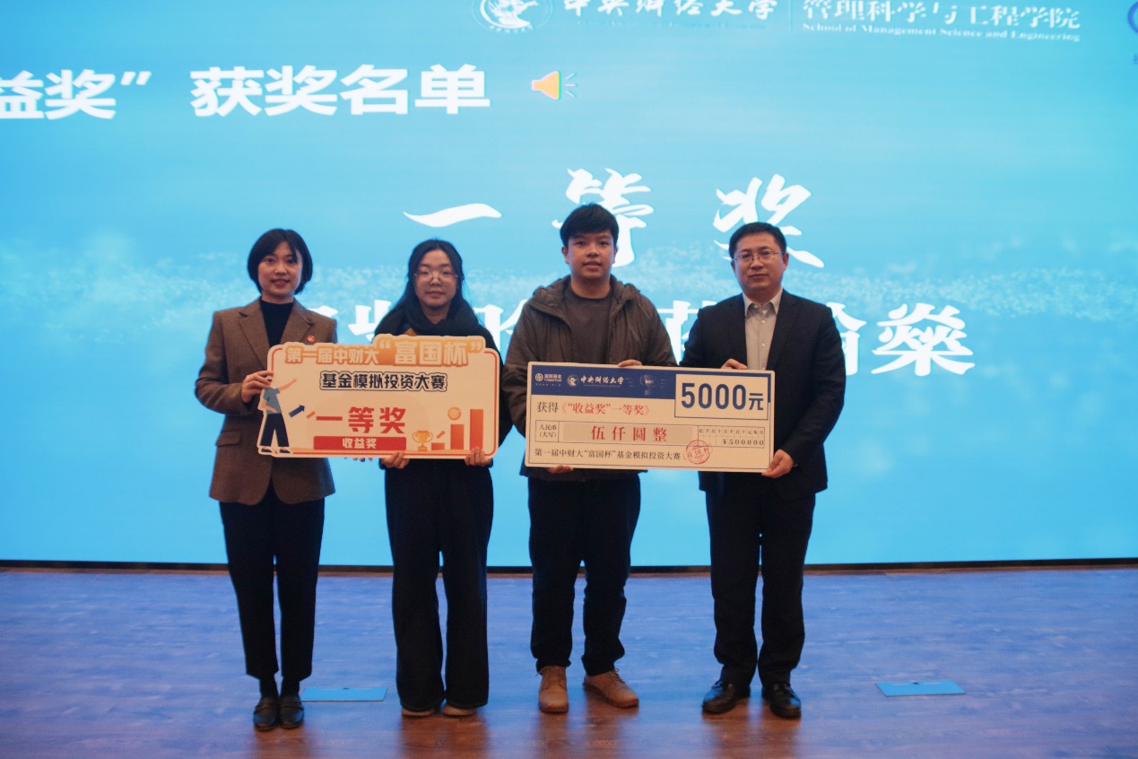 第一屆中財大“富國杯”基金模擬投資大賽全程賽中,700余名來自不同年級和專業(yè)的學生踴躍參賽,53名優(yōu)秀選手榮獲“收益獎”“財經(jīng)視頻獎”,賽出了中財大青年的風采。截至目前,第二屆中財大“富國杯”基金模擬投資大賽已有近千名學生參賽,進一步擴大了大賽的影響力,為同學們提供了更廣闊的實踐場域。