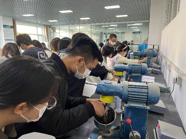 為踐行中央財(cái)經(jīng)大學(xué)-中國(guó)礦業(yè)大學(xué)(北京)實(shí)驗(yàn)教學(xué)合作,夯實(shí)住建部認(rèn)證評(píng)估基礎(chǔ),落實(shí)工程管理專(zhuān)業(yè)實(shí)物實(shí)驗(yàn)教學(xué)要求,在學(xué)校教務(wù)處創(chuàng)新創(chuàng)業(yè)與實(shí)踐教學(xué)改革經(jīng)費(fèi)的支持下,2024年11月10日下午,管理科學(xué)與工程學(xué)院工程管理專(zhuān)業(yè)22級(jí)本科生在建設(shè)經(jīng)濟(jì)與管理系吳國(guó)濱老師的帶領(lǐng)下前往中國(guó)礦業(yè)大學(xué)(北京)沙河校區(qū)開(kāi)展工程材料實(shí)驗(yàn)。
