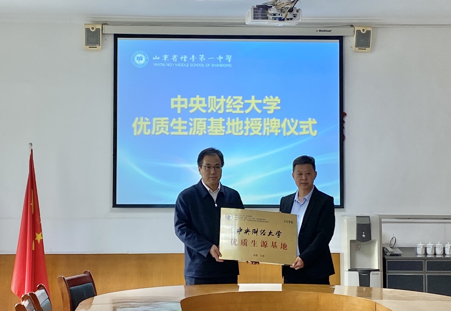 4月22日,招生宣傳組赴煙臺一中開展“中央財經(jīng)大學優(yōu)質(zhì)生源基地”簽約授牌儀式及招生座談會。劉志東代表我校與中學簽署《中央財經(jīng)大學生源基地建設(shè)協(xié)議書》并授牌。宣傳組深入了解了煙臺一中的校史校情、育人理念和生源情況,同時向該校領(lǐng)導介紹了我校的基本情況、人才培養(yǎng)方案和近年來在煙臺的招生情況,并向高三年級學生發(fā)放招生宣傳資料。隨后,雙方就加強合作,協(xié)同育人等問題進行了充分交流。