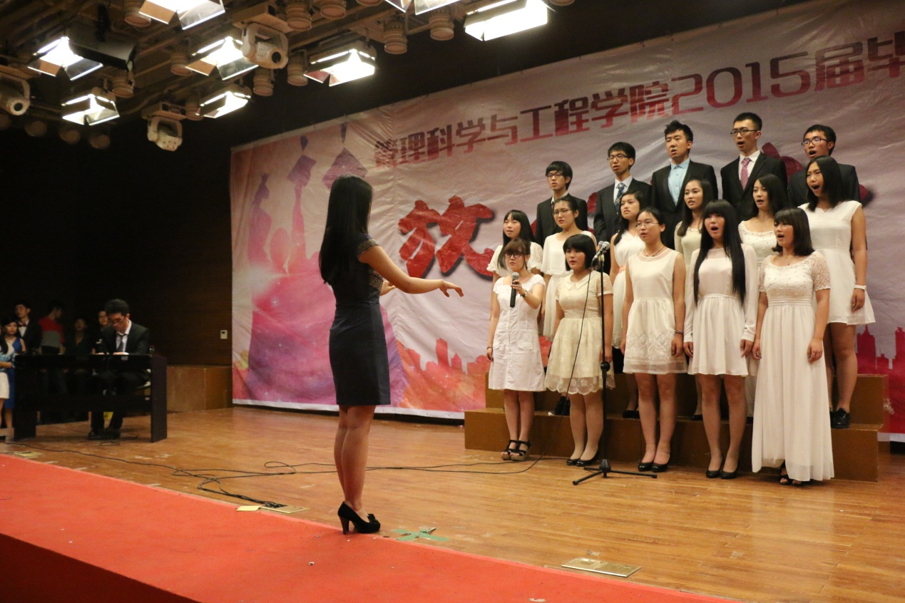 隨后,項目11班的秦越為我們帶來了一首《南方姑娘》,悠揚(yáng)的曲調(diào),富有磁性的聲音,仿佛真的將一位美麗多情的南方姑娘帶到我們面前。自古英雄難過美人關(guān),然而兄弟情義更是地久天長。上下鋪兄弟蔣子涵和海沙爾·葉爾肯深情獻(xiàn)唱《睡在我上鋪的兄弟》,不知是燈光刺痛了眼,還是離別刺痛了心,兩個鐵血男兒眼里竟泛起了點(diǎn)點(diǎn)淚光。研究生學(xué)長黃國慶的《天高地厚》鏗鏘有力,道出了畢業(yè)生們放飛夢想的勇氣;項目班的歌曲串燒《這些年》溫馨綿長,回顧了四年來相識相知相離的苦辣酸甜。工程11的唯美合唱告訴我們,花開花謝,潮起潮落,唯念君安,愛,因?yàn)樵谛闹小?span lang="EN-US">