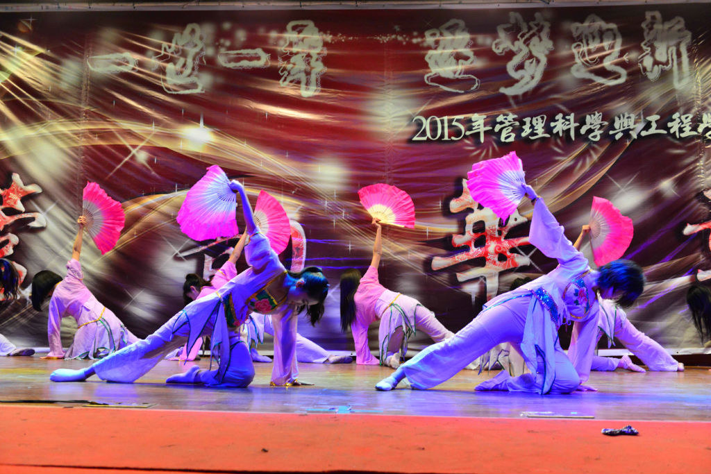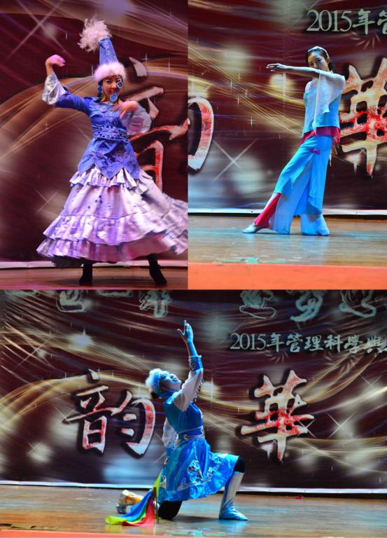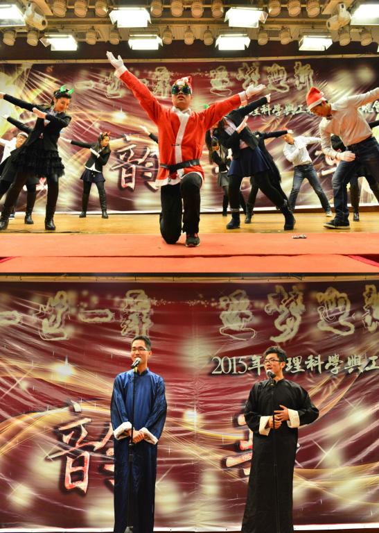 還未從美妙的歌聲中回過(guò)神來(lái),11級(jí)同學(xué)就已登上了舞臺(tái)。據(jù)了解11級(jí)表演的都是已經(jīng)保研的同學(xué),看到日常的學(xué)霸此刻能歌善舞,彩色熒光的牛角頭飾加上一大群男生女生歡快唱跳《barbarbar》,讓觀眾仿佛看到了那個(gè)甜美童真的自己。在一群搞怪大咖們跳完舞后,身著長(zhǎng)衫大褂的廖原和戰(zhàn)昶威便開(kāi)始“求學(xué)問(wèn)道”了。兩個(gè)人的這段相聲一捧一逗、插科打諢。“運(yùn)籌學(xué)簡(jiǎn)單啊,賈老師都樂(lè)了”、“學(xué)霸我可不敢當(dāng),叫我學(xué)神就好”,一個(gè)個(gè)貼切管工人學(xué)習(xí)與生活的段子惹來(lái)在場(chǎng)觀眾頻頻叫好。