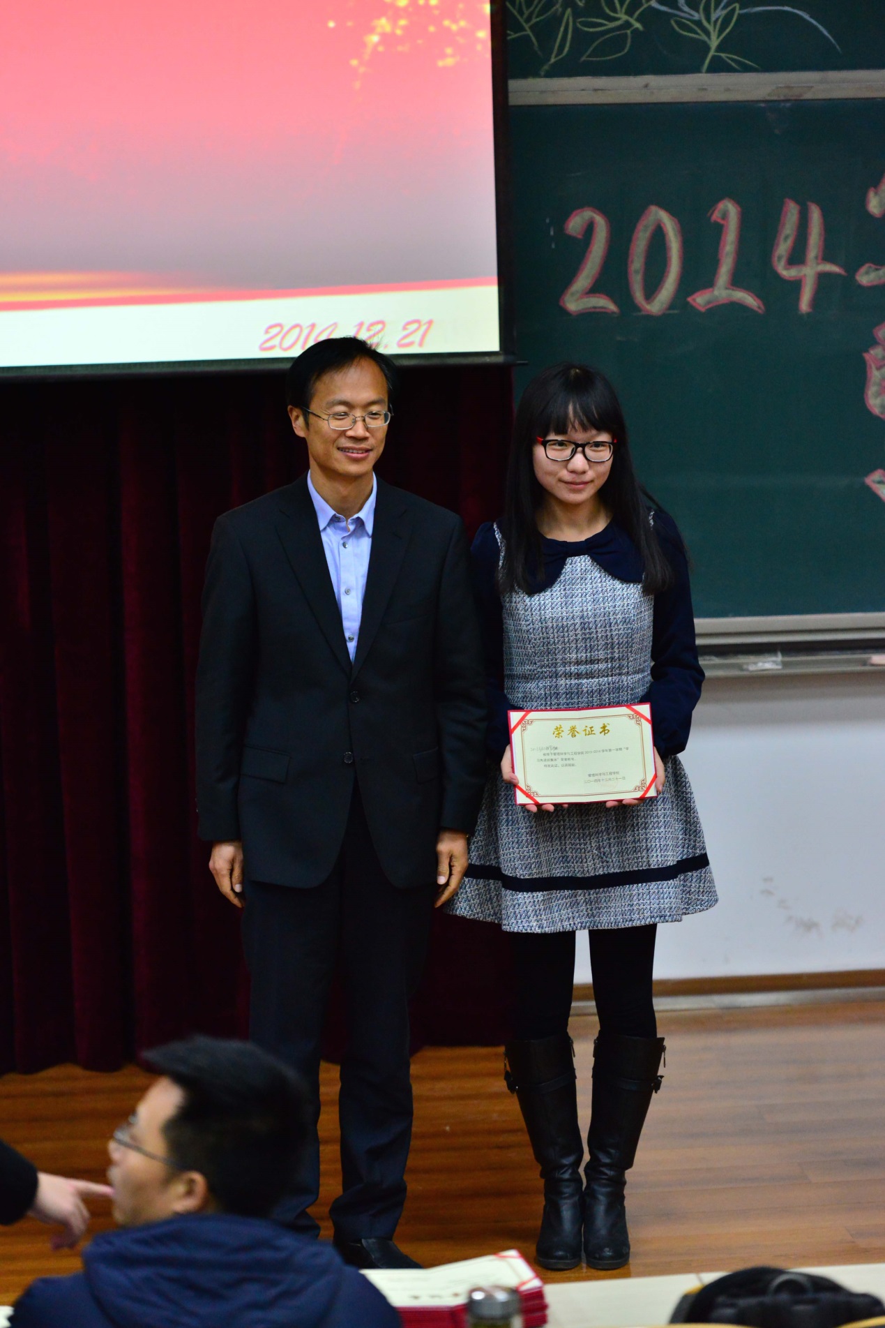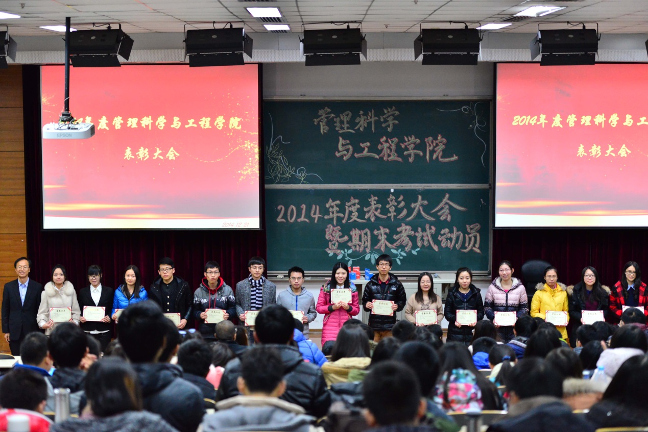 2014年12月21日下午,我院一年一度的優(yōu)秀表彰大會(huì)在沙河主教111召開。院長李文斌,學(xué)院黨總支書記賀小海,副院長林則夫、劉志東,黨總支副書記賈傳亮,組織員晏政,院長助理陳俊華,學(xué)工班主任張志祥,項(xiàng)目系主任宋硯秋,團(tuán)總支書記薄璐,班主任汪濤、王昊、韓璐、高婷、井帥、王優(yōu)榮,輔導(dǎo)員林嘉祥、王思維等領(lǐng)導(dǎo)和老師參加了本次表彰大會(huì)。