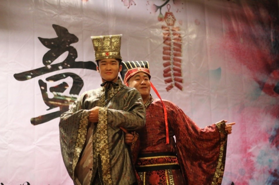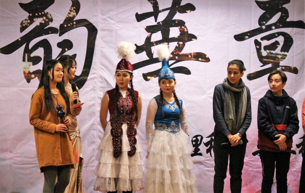 舞蹈之后,是管科14帶來的一出默劇,講述了在公交車上不甚正義的普通人與小偷斗智斗勇的故事,演員們中世紀英國紳士的裝扮令人不禁想起了卓別林的經(jīng)典造型,風趣幽默的表演中蘊藏著樸實的道理,傳達了平凡人心中的真善美。隨后,精彩的節(jié)目暫時告一段落,熟悉的背景音樂突然響起,原來晚會節(jié)目組還邀請了學院中來自各個少數(shù)民族的同學帶來各具民族特色的拜年方式,從蒙古族,維吾爾族,藏族,土家族的獨特語言,到彝族,哈薩克族精彩的才藝展示,再到來自寶島臺灣的新春問候,晚會的氣氛更加融洽。
