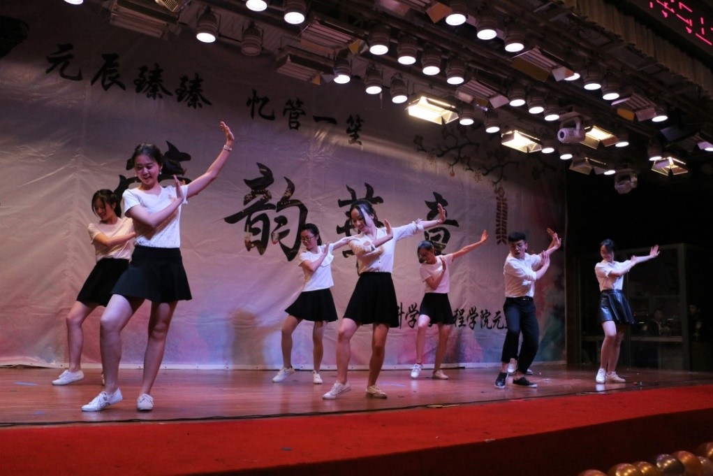 除了相聲、歌曲之外,還有由“千里迢迢”從本部趕來的大四同學們帶來的精彩舞蹈,舞動的身姿是她們洋溢的青春。