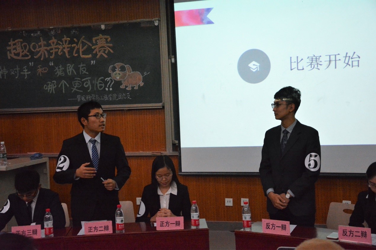 自10月29日到11月29日,整整一個(gè)月,17場(chǎng)辯論賽,管工學(xué)院的全員參與,都注定了這場(chǎng)決賽,將是令人期盼,使人難忘的。而當(dāng)場(chǎng)的各位選手的表現(xiàn),也讓這場(chǎng)比賽高潮迭起!
