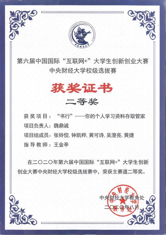 近日,我院本科生大創(chuàng)“書行”團隊(組長:魏鼎誠-管工學(xué)院19級;組員:張鈴佼-管工學(xué)院17級、鐘凱樺-中經(jīng)管19級、黃可詩-保險學(xué)院19級、吳澄亮-管工學(xué)院19級、黃捷-金融學(xué)院19級)在我院副院長、博士生導(dǎo)師王金亭教授的指導(dǎo)下,榮獲第六屆中國國際“互聯(lián)網(wǎng)+”大學(xué)生創(chuàng)新創(chuàng)業(yè)大賽校級二等獎、北京市級三等獎(師生共創(chuàng)組)。