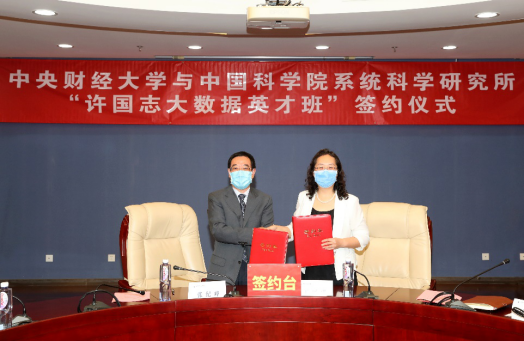 隨后,張紀(jì)峰、王瑤琪分別代表中科院系統(tǒng)所和中央財(cái)經(jīng)大學(xué),簽署了《中央財(cái)經(jīng)大學(xué)與中國(guó)科學(xué)院數(shù)學(xué)與系統(tǒng)科學(xué)研究院系統(tǒng)科學(xué)研究所聯(lián)合實(shí)施“許國(guó)志大數(shù)據(jù)英才班”協(xié)議書(shū)》。